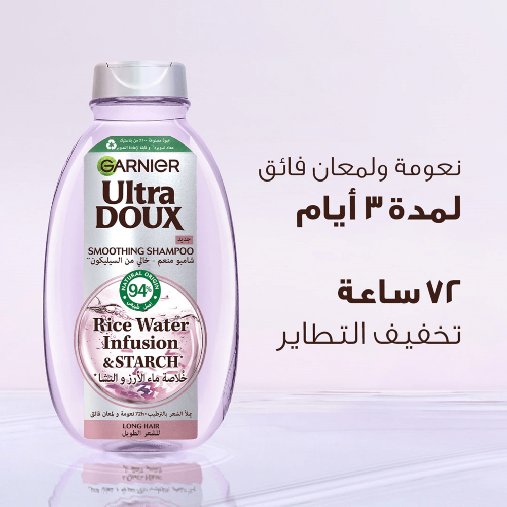 شامبو غارنيه الترا دوكس بخلاصة ماء الأرز والنشا ليس مجرد منتج لتنظيف الشعر، بل تجربة عناية متكاملة تمنحك الثقة في جمال شعرك وتجعلك تستمتعين بإطلالة أنثوية مميزة كل يوم. إنه الحل الأمثل لكل امرأة تبحث عن منتج فعّال يجمع بين التغذية، الترطيب، واللمعان الطبيعي.