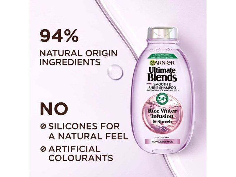 غارنيه الترا دوكس شامبو للمعان الشعر بخلاصة ماء الأرز والنشا 600 مل