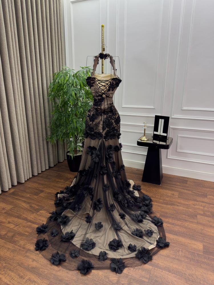 فستان سهرة فاخر مزين باللؤلؤ هو الخيار الأمثل لكل امرأة تبحث عن التميز والأناقة، ليمنحها إطلالة ساحرة لا تُنسى في كل مناسبة خاصة.
