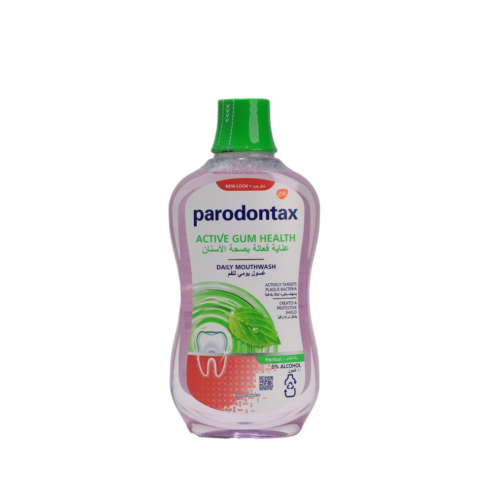 غسول الفم اليومي بارودونتكس بالعناية العشبية مصمم للمساعدة في الحفاظ على صحة اللثة وتقليل مشاكلها مع الاستخدام المنتظم. تركيبته العشبية تعمل على تنظيف الفم بفعالية، دعم العناية اليومية باللثة، ومنح إحساس بالانتعاش طويل الأمد دون التأثير على التوازن الطبيعي للفم.