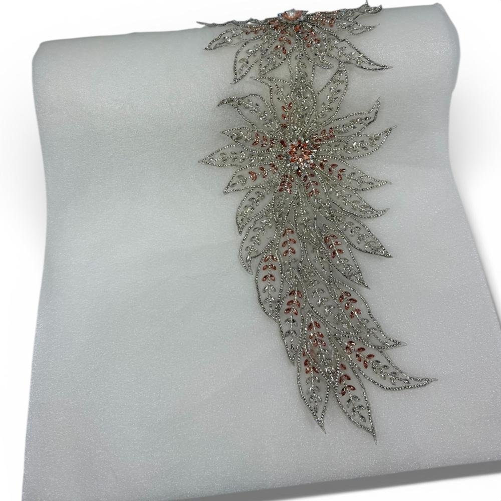 قماش يتميز بفخامته الهادئة ولمسته الراقية، يجمع بين النعومة والرقي بتصميم أنيق يلفت النظر دون مبالغة. قطعة مختارة بعناية بلون فضي لؤلؤي ناعم، تتزين بتطريز فاخر يمنح القماش حضورًا أنثويًا متوازنًا ولمسة فنية راقية.