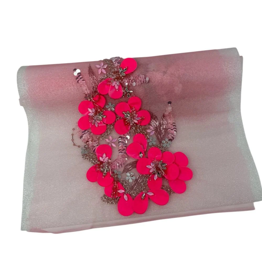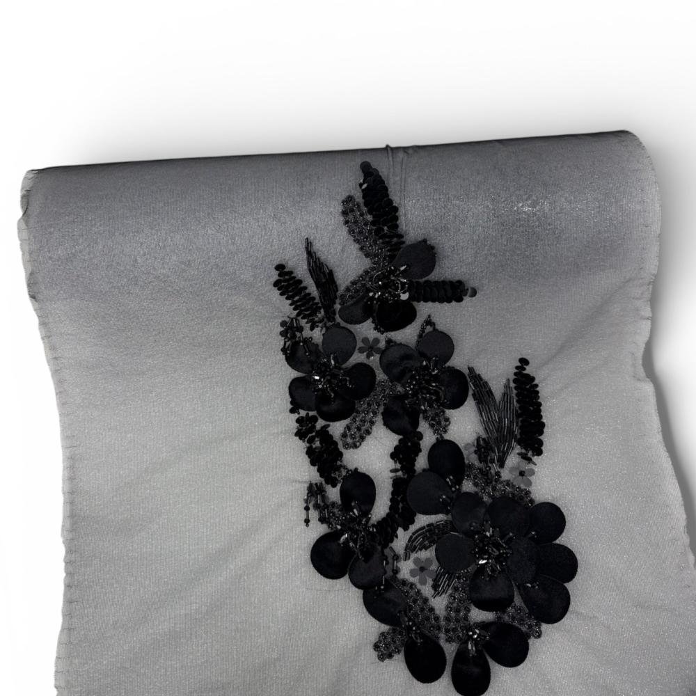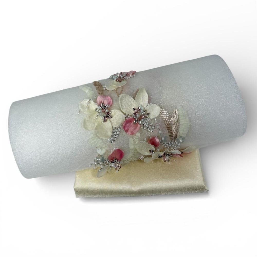 قطعة فنية تنبض بالأناقة، صُمّمت بعناية فائقة لتلبي ذوق الباحثين عن التميّز. يأتي هذا البانو المطرّز على قاعدة ناعمة بلون عاجي مائل للفضي، تتوسطه زهور بارزة ثلاثية الأبعاد بدرجات الأخضر الفستقي، تتناغم معها لمسات من الخرز والترتر اللامع لتشكّل لوحة فنية راقية تضيف فخامة استثنائية لأي تصميم.