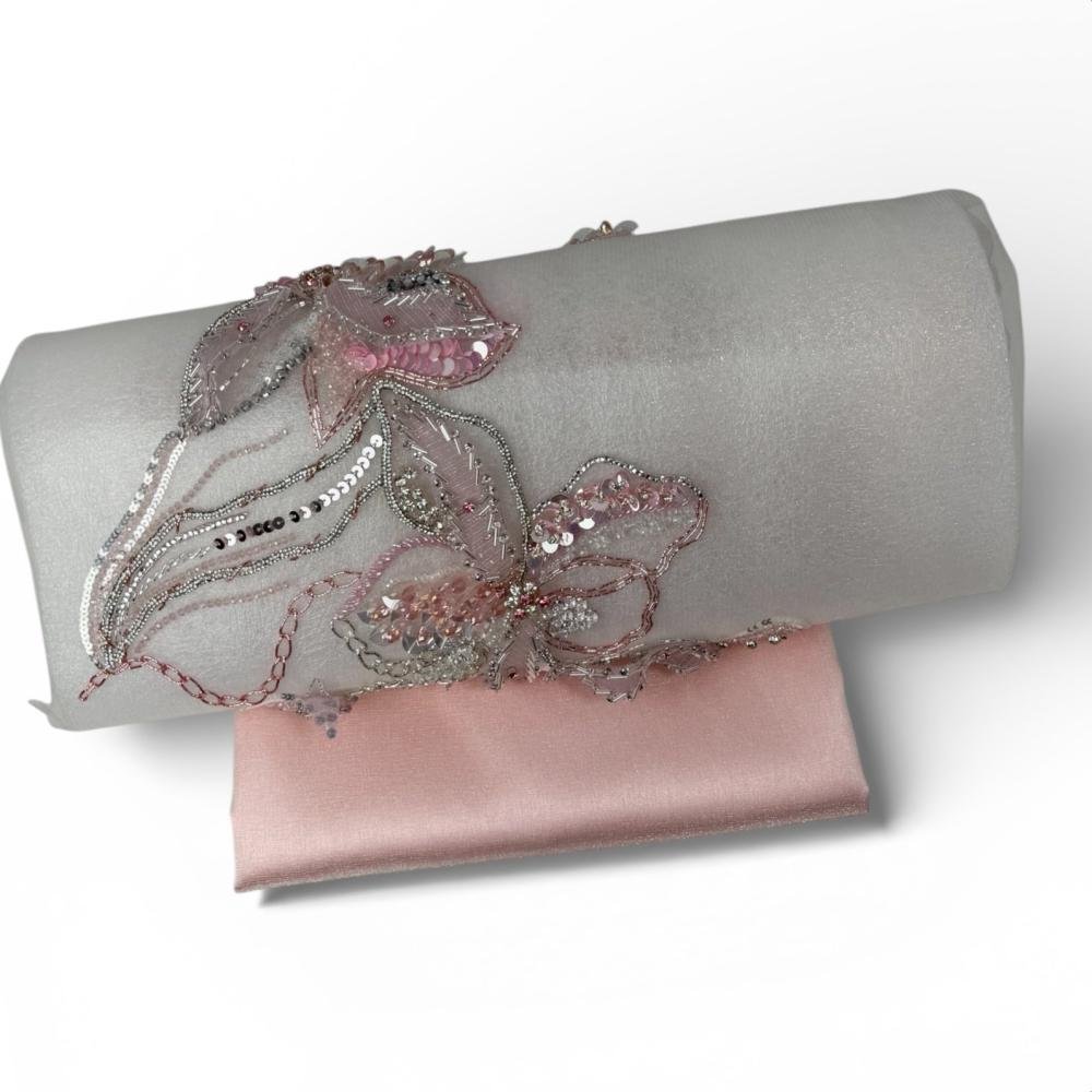 • لمسات فضية خفيفة مع تطريز خرزي شفاف