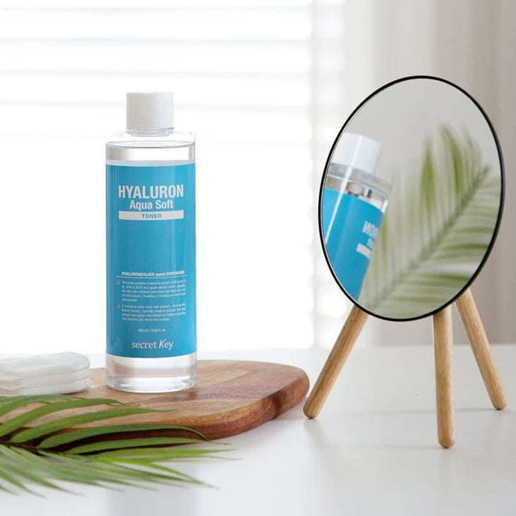 تونر هيالورون أكوا سوفت من سيكريت كي هو تونر ترطيب يومي غني بحمض الهيالورونيك الذي يعزز قدرة البشرة على الاحتفاظ بالرطوبة. يساعد على تهدئة البشرة، تحسين نعومتها، وتحضيرها لامتصاص السيرومات والكريمات بشكل أفضل.