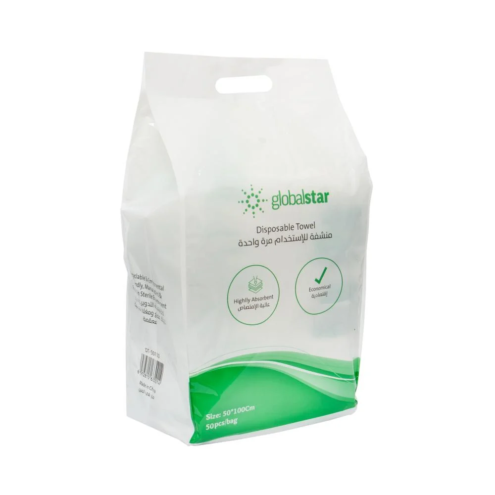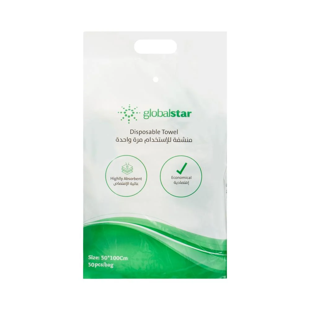 جلوبال ستار | فوط استخدام مرة واحدة | 100*50 سم | 50 حبه مصنوعة من لب الشجر الطبيعي