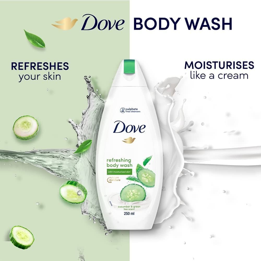 دوف غسول جسم مع ليفة انتعاش بالخيار والشاي الأخضر – 250 مل