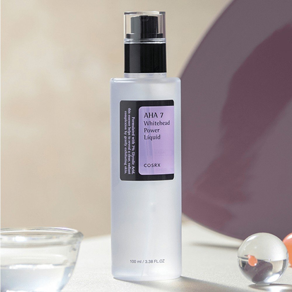 سائل مقشر AHA 7 للرؤوس البيضاء من كوسركس هو الحل المثالي لتنقية البشرة بفعالية وتقليل الشوائب اليومية.