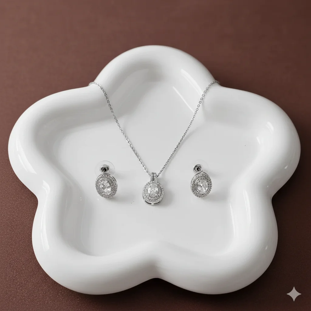 أطقم اكسسوارات نسائية فاخرة من الزركون – سلسال وحلق بتصاميم أنيقة لجميع المناسبات