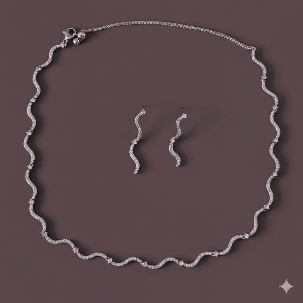 أطقم اكسسوارات نسائية فاخرة من الزركون – سلسال وحلق بتصاميم أنيقة لجميع المناسبات
