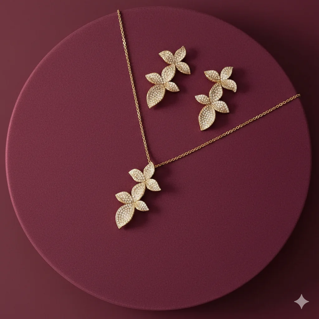 أطقم اكسسوارات نسائية فاخرة من الزركون – سلسال وحلق بتصاميم أنيقة لجميع المناسبات