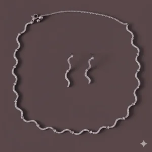 طقم زركون فاخر نسائي – سلسال وحلق أنيق لجميع المناسبات
