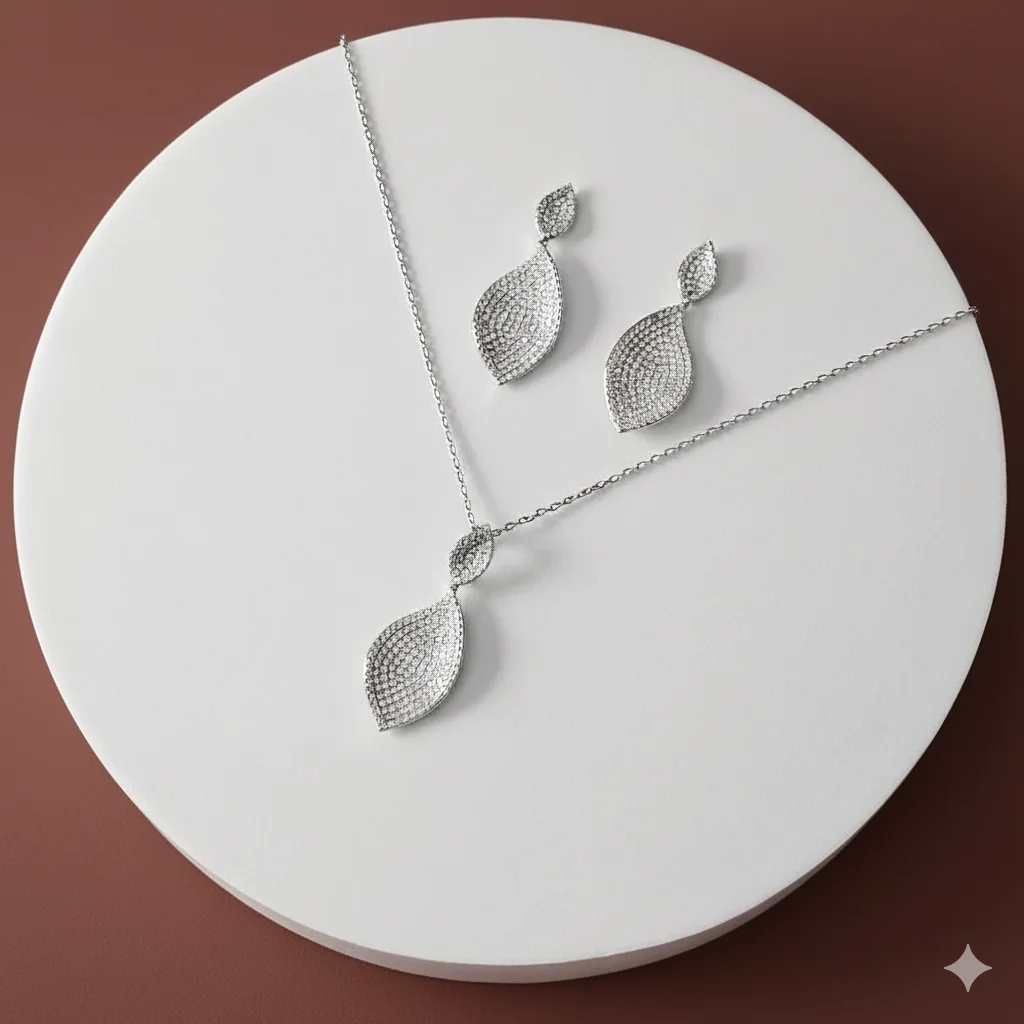 أطقم اكسسوارات نسائية فاخرة من الزركون – سلسال وحلق بتصاميم أنيقة لجميع المناسبات