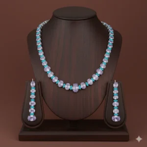 طقم زركون فاخر نسائي – سلسال وحلق أنيق لجميع المناسبات