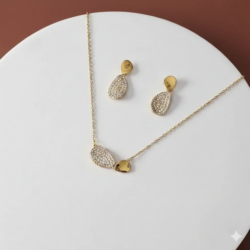 أطقم اكسسوارات نسائية فاخرة من الزركون – سلسال وحلق بتصاميم أنيقة لجميع المناسبات