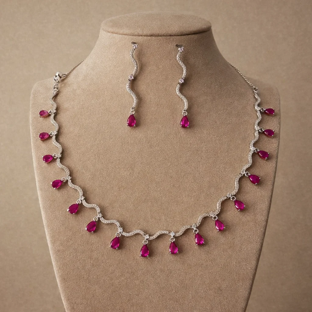 أطقم اكسسوارات نسائية فاخرة من الزركون – سلسال وحلق بتصاميم أنيقة لجميع المناسبات