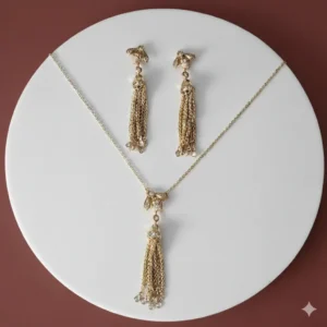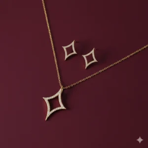 طقم زركون فاخر نسائي – سلسال وحلق أنيق لجميع المناسبات