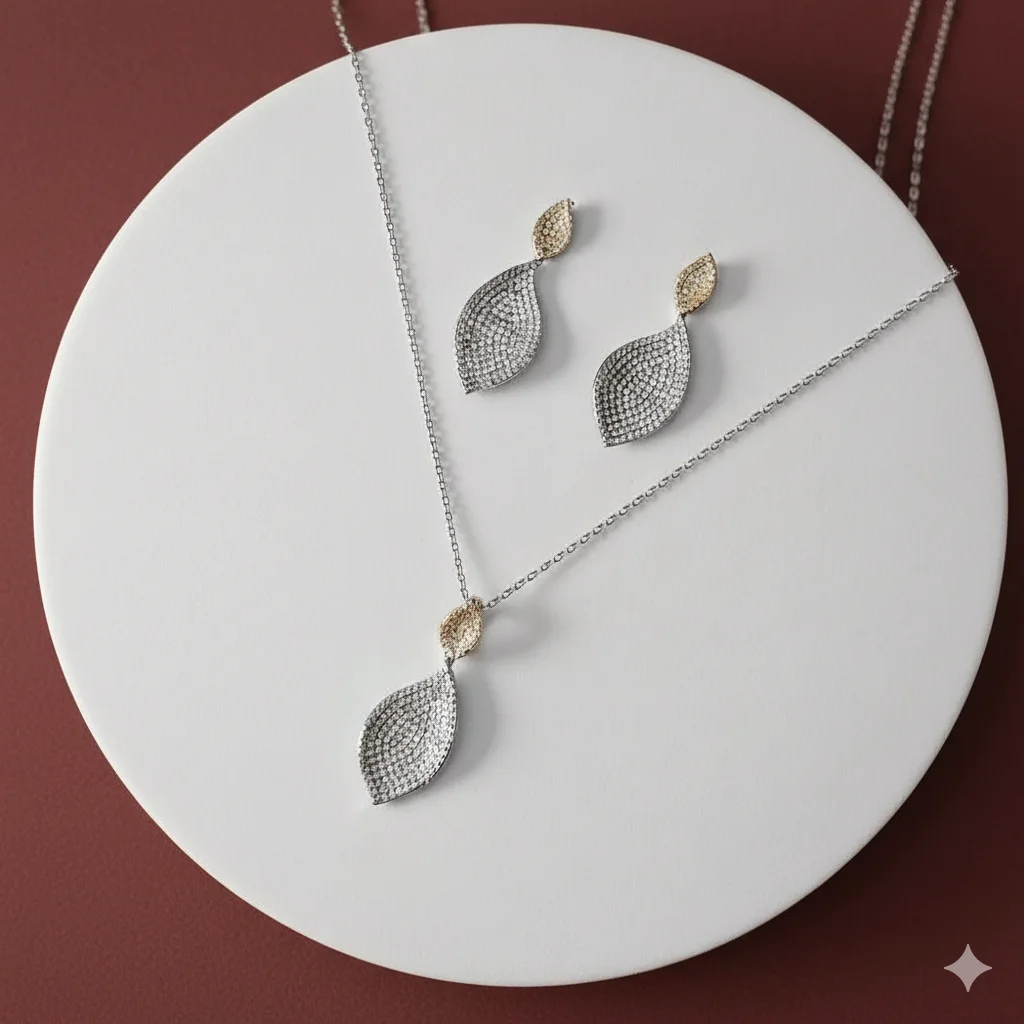 أطقم اكسسوارات نسائية فاخرة من الزركون – سلسال وحلق بتصاميم أنيقة لجميع المناسبات