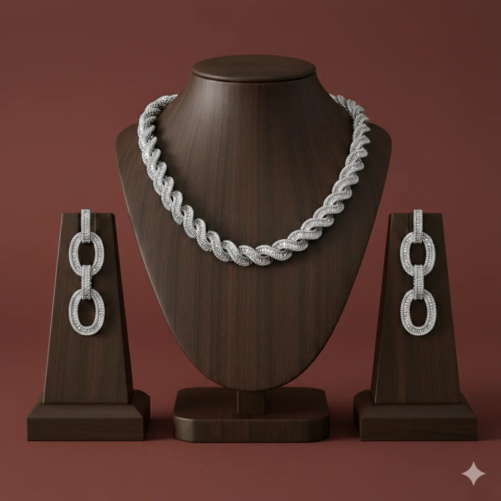 أطقم اكسسوارات نسائية فاخرة من الزركون – سلسال وحلق بتصاميم أنيقة لجميع المناسبات