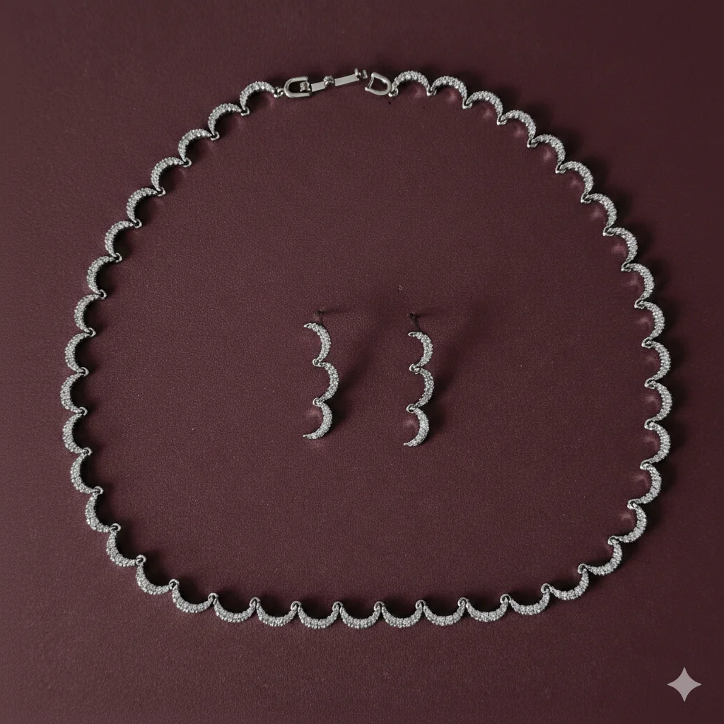 أطقم اكسسوارات نسائية فاخرة من الزركون – سلسال وحلق بتصاميم أنيقة لجميع المناسبات