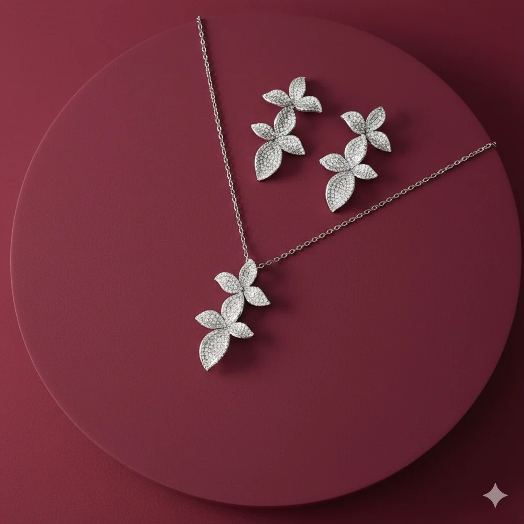 أطقم اكسسوارات نسائية فاخرة من الزركون – سلسال وحلق بتصاميم أنيقة لجميع المناسبات