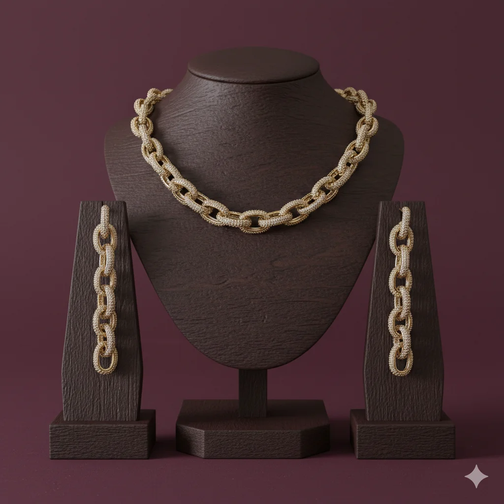 أطقم اكسسوارات نسائية فاخرة من الزركون – سلسال وحلق بتصاميم أنيقة لجميع المناسبات
