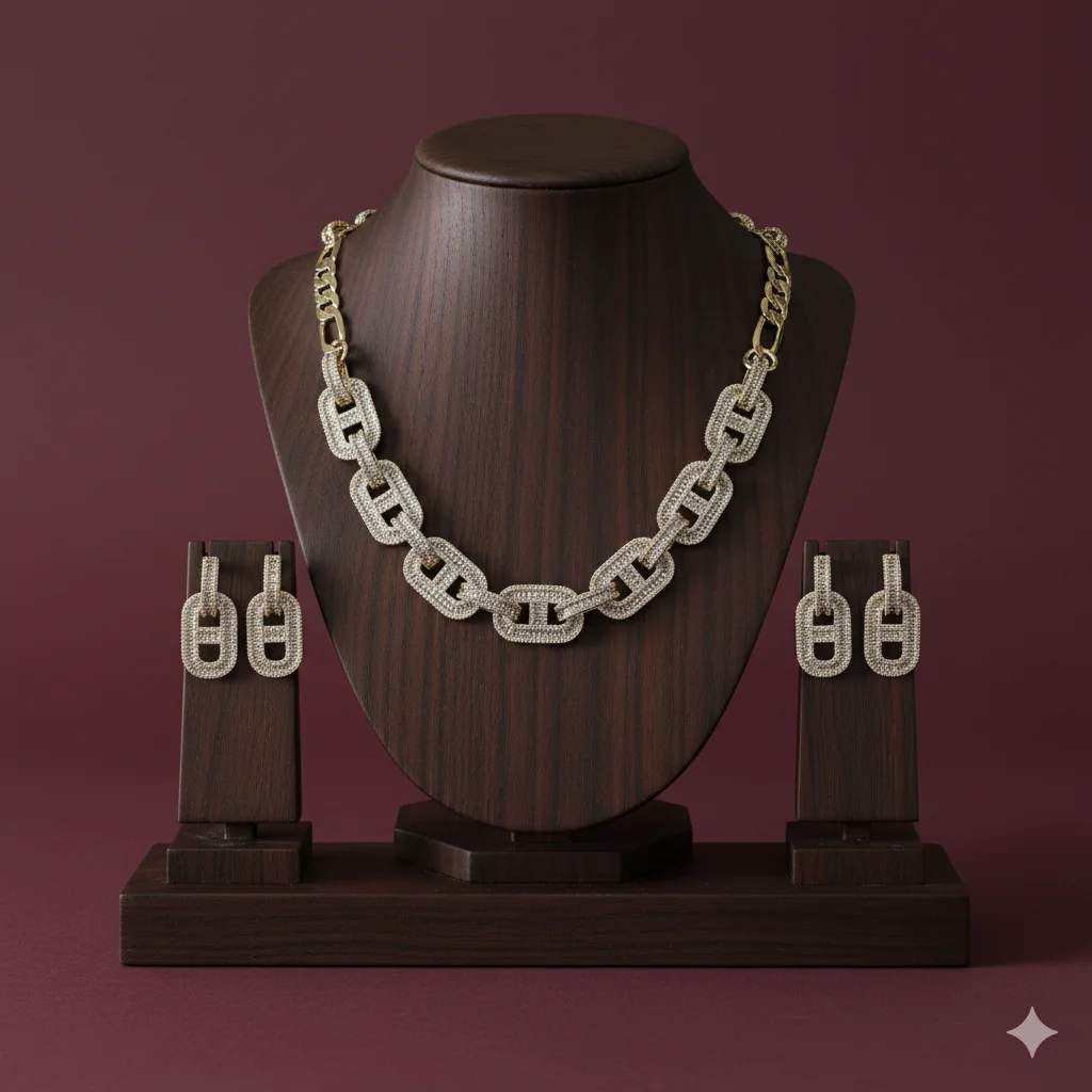 أطقم اكسسوارات نسائية فاخرة من الزركون – سلسال وحلق بتصاميم أنيقة لجميع المناسبات