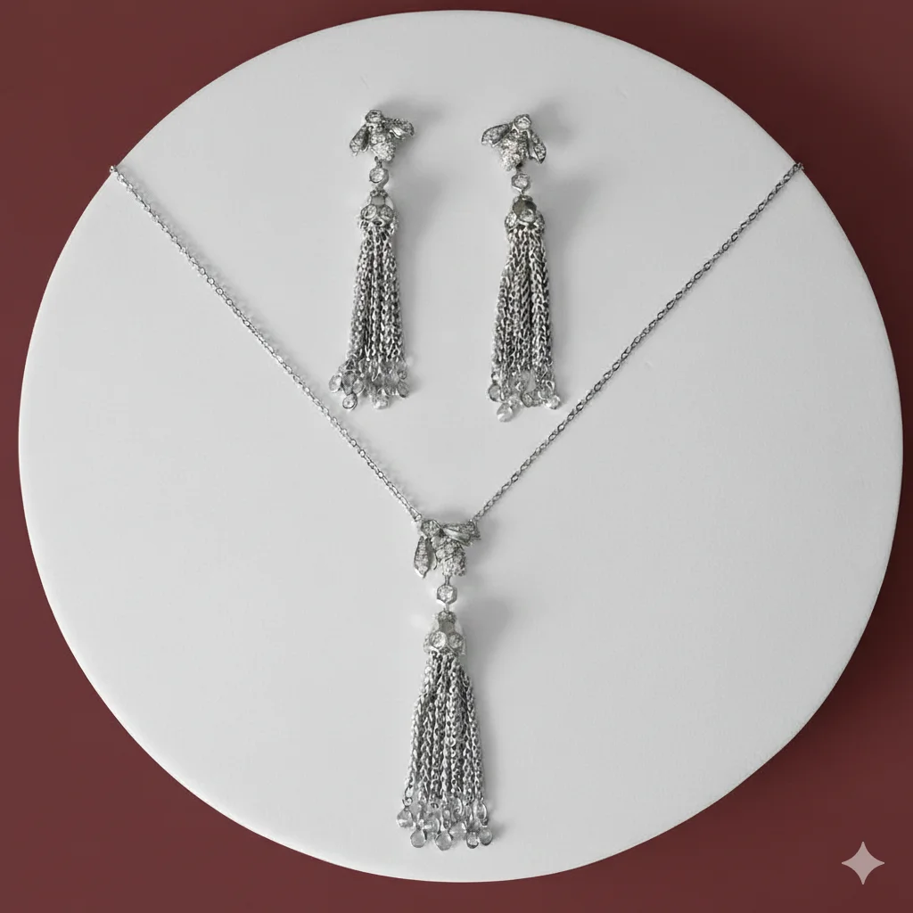 طقم زركون فاخر نسائي – سلسال وحلق أنيق لجميع المناسبات