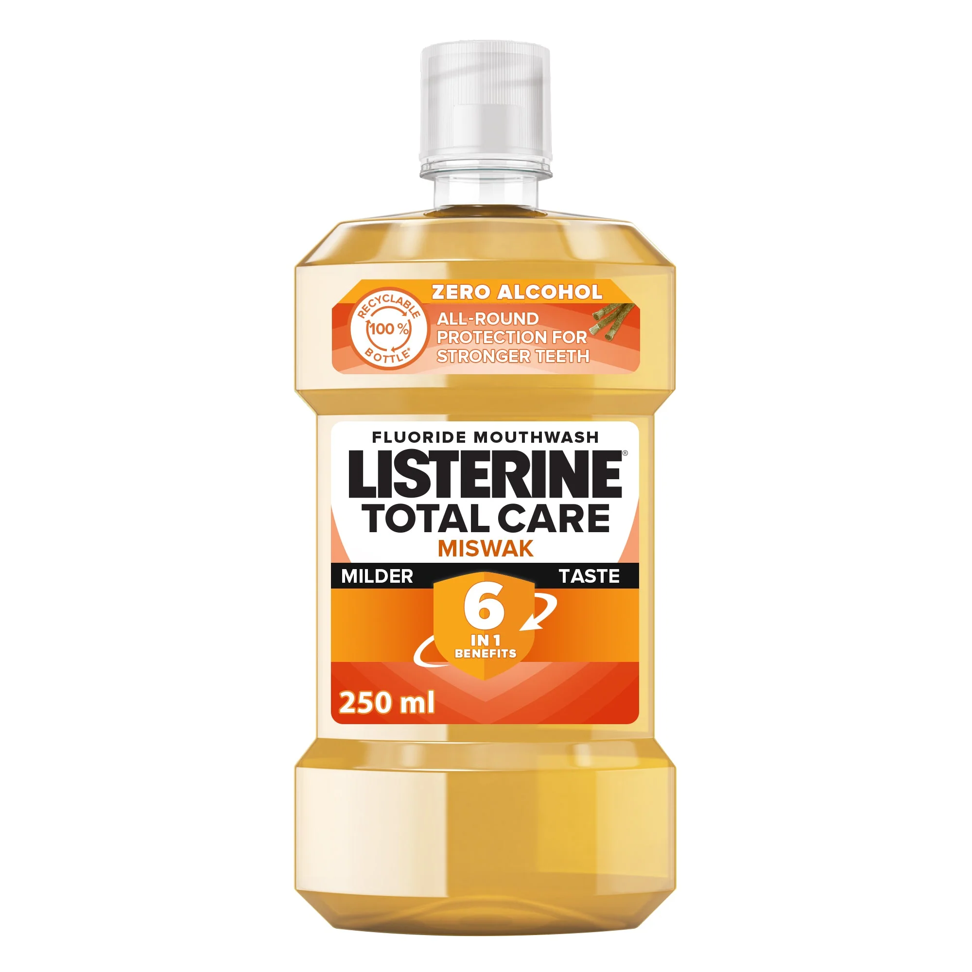 غسول فم خالي من الكحول بنكهة السواك المنعشة يستخدم مرتين بعد تنظيف الأسنان بالفرشاة.