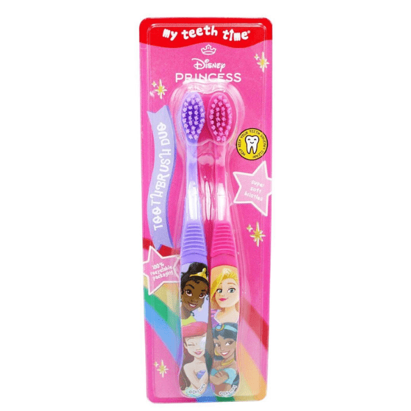 فرشاة أسنان للأطفال برسومات أميرات ديزني – قطعتين تجعل تنظيف الأسنان ممتعاً للأطفال بفضل تصميمها المميز برسومات أميرات ديزني المحببة. شعيراتها الناعمة لطيفة على اللثة والأسنان الصغيرة، بينما حجمها المناسب يسهل على الأطفال التحكم بها. تساعد على تشجيع الأطفال على عادة التفريش اليومي بطريقة مرحة وصحية.