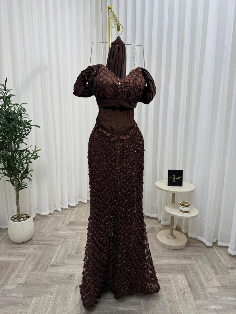 فستان سهرة فاخر من المخمل المطرّز هو الخيار الأمثل لكل امرأة تبحث عن الأناقة والتميز، ليمنحها إطلالة ساحرة لا تُنسى في كل مناسبة خاصة.