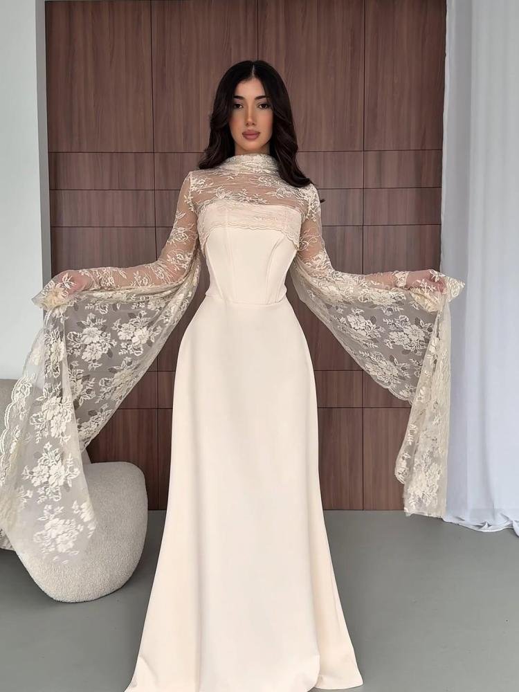 ✨ مميزات الفستان:دانتيل فاخر بنقوش زهرية دقيقة
