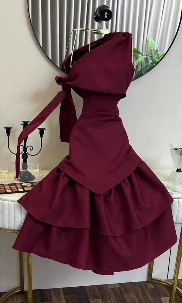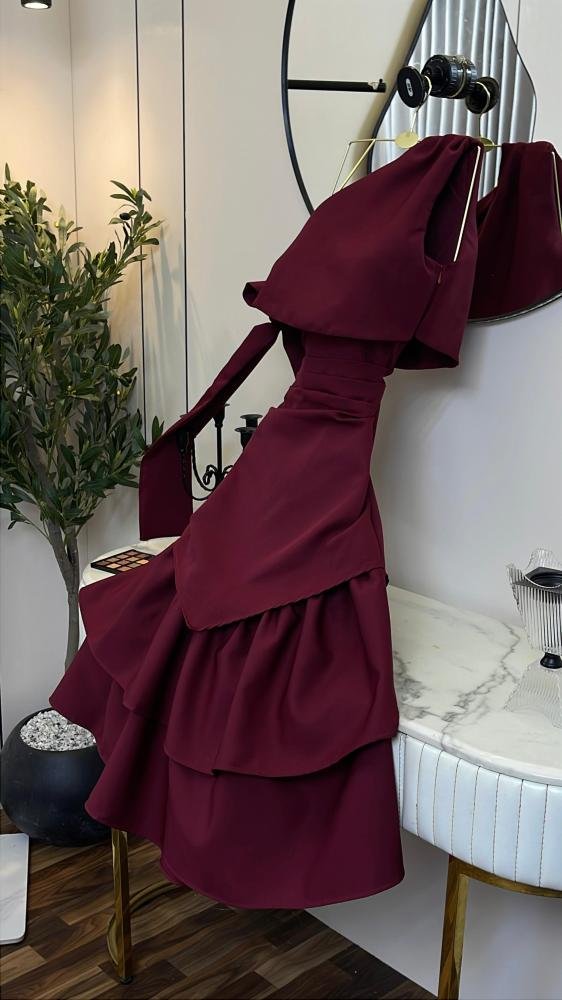 فستان عنّابي فاخر بتصميم يخطف الأنظار من أول نظرة ✨