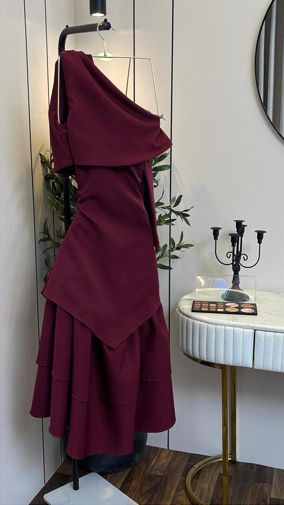 فستان عنّابي فاخر بتصميم يخطف الأنظار من أول نظرة ✨