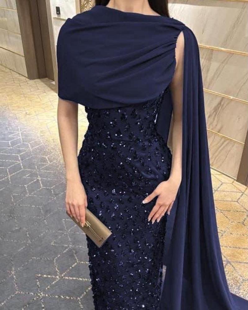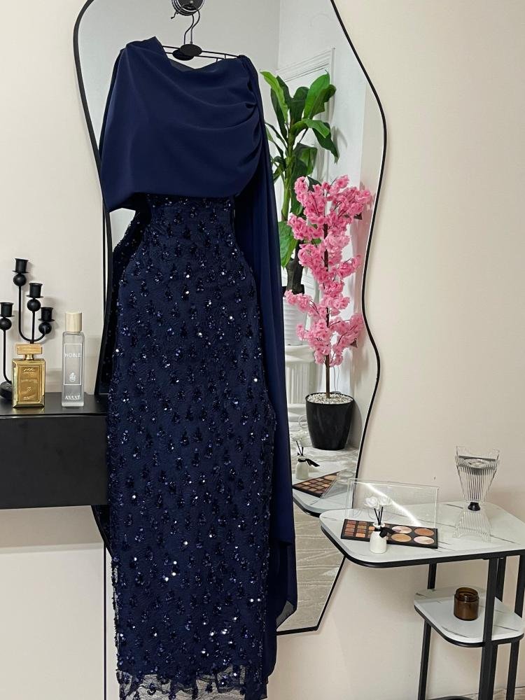 هذا الفستان مثالي للسهرات الليلية حيث الأضواء تنعكس على حبات الخرز والترتر لتخلق تلاعباً ضوئياً ساحراً. يمكن تنسيقه بسهولة مع إكسسوارات بسيطة، لأن الفستان بحد ذاته قطعة مميزة لا تحتاج إلى الكثير من الإضافات.