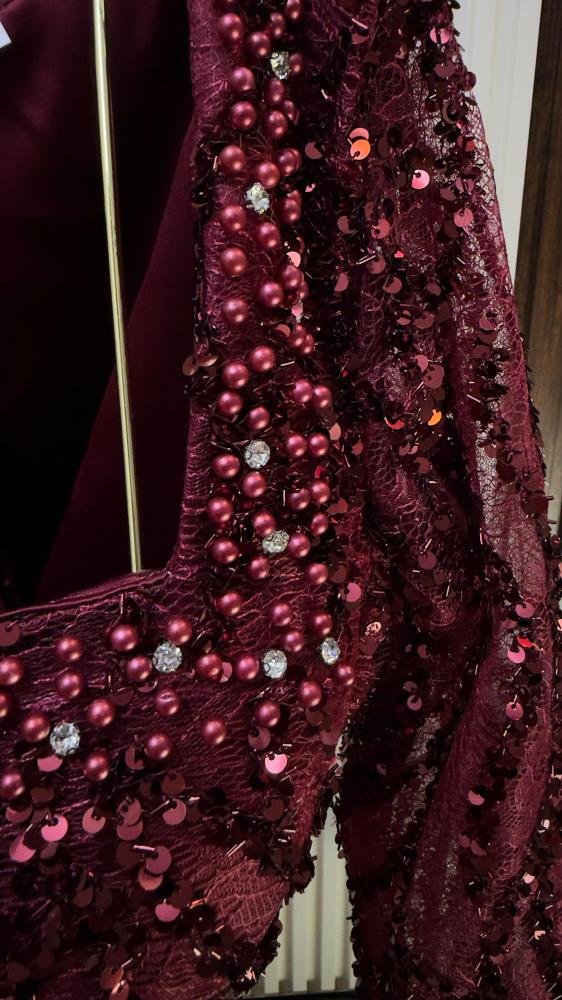 الدانتيل والفصوص الكريستالية هما العنصران اللذان يميزان هذا الفستان، حيث يضيفان لمسة فنية راقية تعكس الجودة العالية والاهتمام بأدق التفاصيل الدقيقة. إنه ليس مجرد فستان سهرة، بل تجربة متكاملة تمنحك الثقة والجمال في كل مناسبة، ليبقى في ذاكرتك كقطعة مميزة تعكس شخصيتك وأسلوبك الراقي.