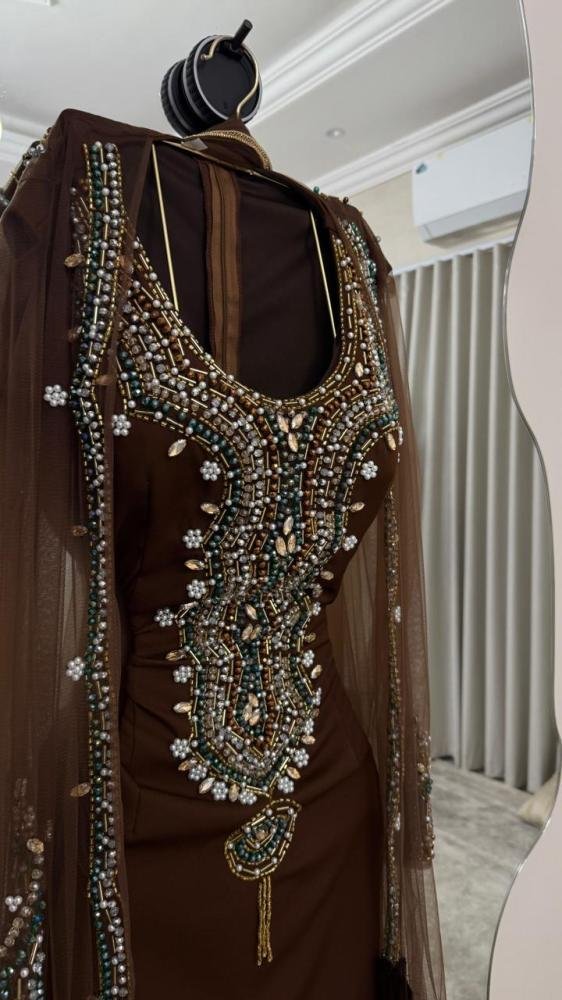 الراحة أيضًا جزء أساسي من التصميم، حيث تم اختيار الخامات بعناية لتكون ناعمة على البشرة وسهلة الحركة، مما يجعل الفستان مناسبًا للارتداء لساعات طويلة دون أي شعور بالإزعاج. كما أن تفاصيله الدقيقة مثل التطريز اليدوي والقصات المدروسة تضيف لمسة شخصية تجعل الفستان قطعة فنية تستحق الاقتناء.