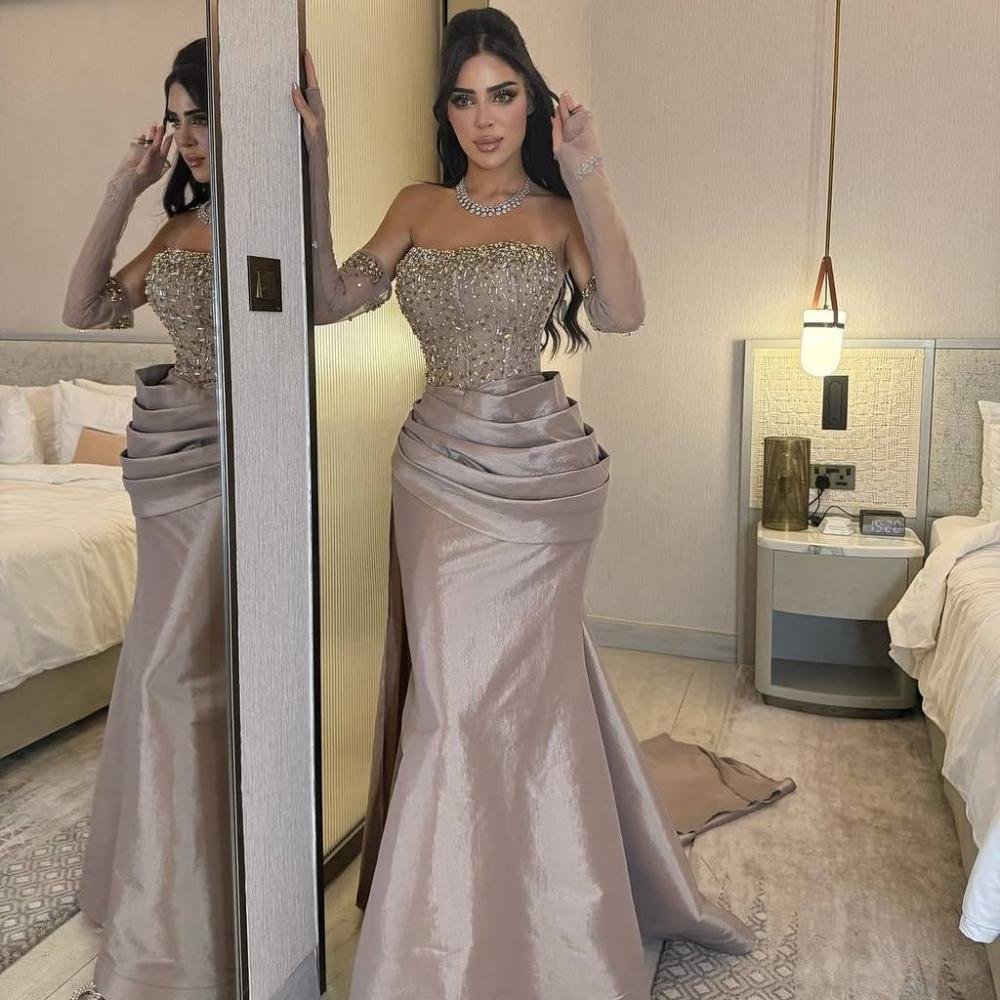 ✨ فستان سهرة شامبين فاخر بتصميم كورسيه أنيق