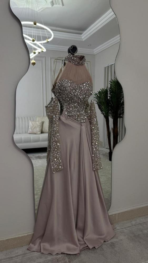 فستان سهرة فاخر بتطريز لامع وتصميم ملكي هو الخيار الأمثل لكل امرأة تبحث عن التميز والأناقة، ليمنحها إطلالة ساحرة لا تُنسى في كل مناسبة خاصة.