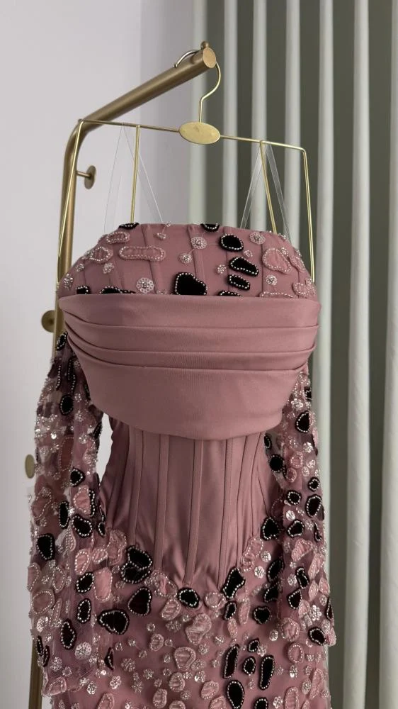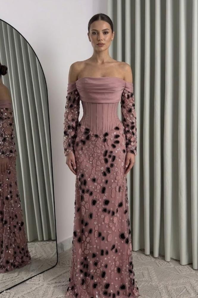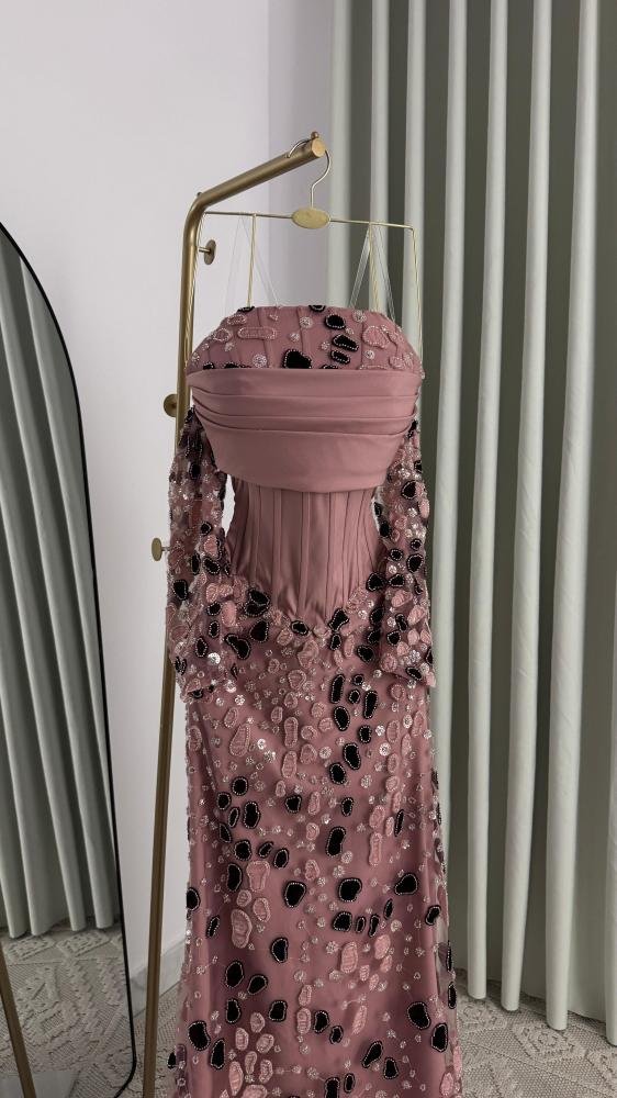 إذا تبحثين عن إطلالة راقية تخطف الأنظار، فهذا الفستان يجمع بين نعومة اللون الموف الوردي وفخامة التطريز اللامع بتفاصيل دقيقة تمنحك حضورًا استثنائيًا. تصميم أنثوي فاخر بكورسيه مشدود يبرز القوام، مع أكمام مطرزة ولمسات مترفة تناسب السهرات والمناسبات الراقية.