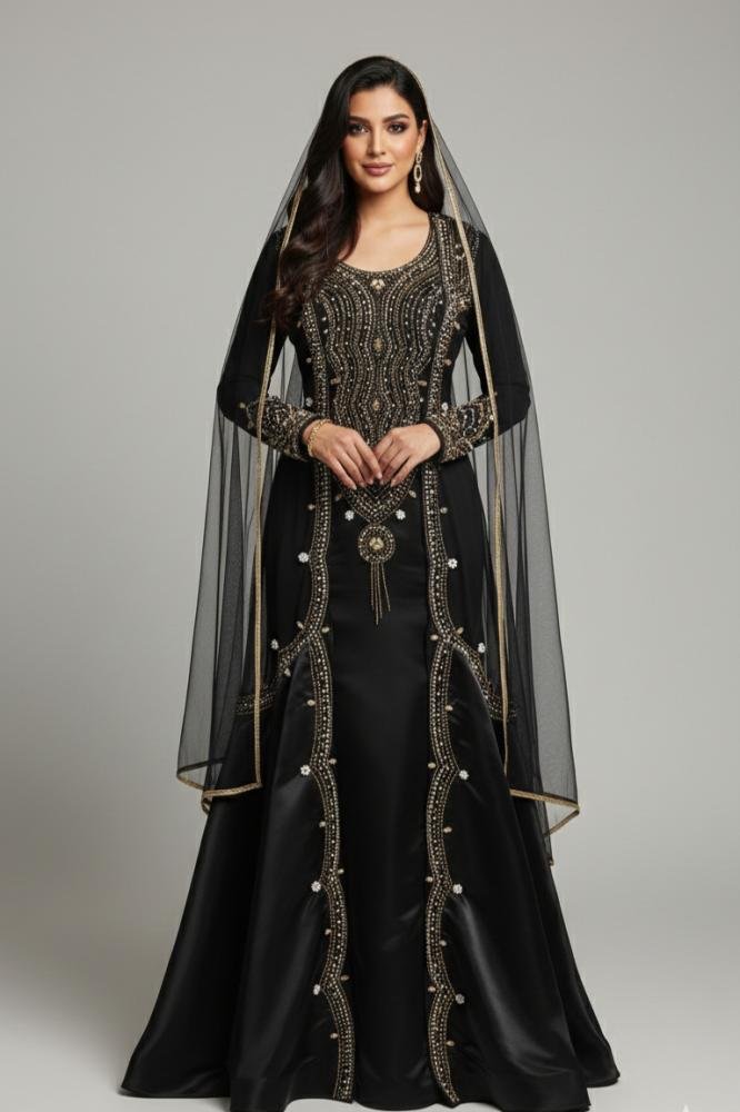 هذا الفستان مثالي للمحجبات الباحثات عن إطلالة محتشمة وعصرية في الوقت نفسه. قصة الفستان واسعة ومناسبة، مع أكمام طويلة تغطي الذراعين بأناقة. كما أن طول الفستان يصل إلى ما تحت الركبة أو الكاحل حسب اختيارك، ليمنحك مظهراً محتشماً دون التضحية بالأناقة.