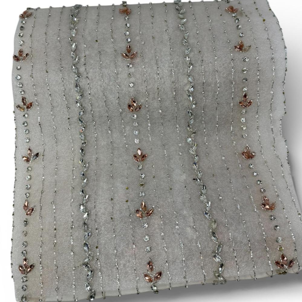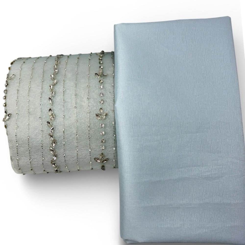 تفاصيل هادئة ولمعة أنيقة تميّز هذا الطقم المصمم بعناية ليمنحك إطلالة راقية تناسب مختلف الأذواق. قطعة تجمع بين القماش السادة الناعم والقماش المطرّز بتطريز طولي دقيق من الخرز الكريستالي مع لمسات لونية ناعمة تضيف فخامة متوازنة.
