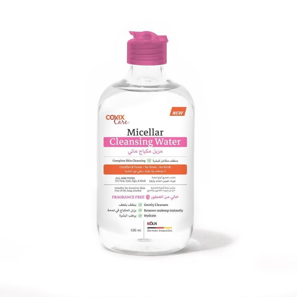 كوفيكس مزيل مكياج مائي يعمل بتقنية الميسيلار التي تجذب الشوائب والزيوت والمكياج دون الحاجة للفرك، مما يجعله مناسبًا للبشرة الحساسة. يساعد على تنظيف الوجه، العيون، والشفاه بلطف مع الحفاظ على ترطيب البشرة ونعومتها. تركيبته خفيفة وخالية من العطور القاسية، ويعتبر خيارًا مثاليًا للاستخدام اليومي لتنظيف البشرة وإزالة المكياج المقاوم للماء.