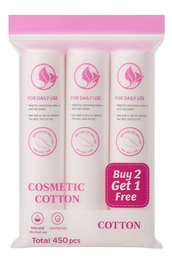 مناديل قطن SY624 مصممة بخامة ناعمة مناسبة لإزالة المكياج وتنظيف البشرة دون خدش أو تهيّج. تتميز بامتصاص عالي يجعلها فعّالة مع مزيلات المكياج والتونر ومنتجات العناية بالبشرة. تأتي بعبوة كبيرة تحتوي على 450 حبة، مما يجعلها عملية واقتصادية للاستخدام اليومي.