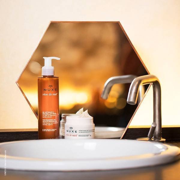 جل الاستحمام المنظف ومزيل المكياج – ينظف ويهدئ وينعم البشرة الجافة والحساسة. يعمل هذا الجل اللطيف المنظف ومزيل المكياج بالعسل وعباد الشمس على تنظيف البشرة وتلطيفها وإزالة المكياج بحركة لطيفة واحدة، مما يمنحك بشرة جميلة ونقية في نفس الوقت. مناسب لجميع أنواع البشرة. المكونات الرئيسية: العسل وعباد الشمس. الفوائد الرئيسية: جل ينظف ويزيل المكياج. ينظف ويرطب معًا. للبشرة الجافة والحساسة.